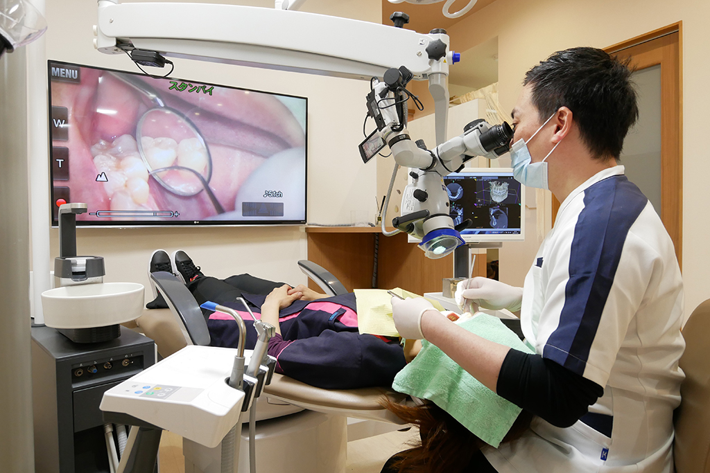 最大20倍の視野が実現し、これまで肉眼では確認することの出来なかった小さな虫歯の取り残し防止や精度の高い根の治療、また、目に見えない細かいヒビの確認等、治療の際にマイクロスコープを使用することで治療の質の向上が実現しました。