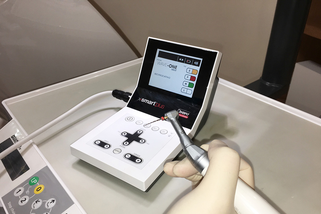 当院が力を入れている治療の一つが根管治療とよばれる根っこの処置です。 根の治療を行う際には専用の機器とニッケルチタンファイルを使用します。 根の治療に長い期間を費やしてきた経験があると思いますが、正しい知識を持って正しい道具を使用することでより正確に、短期間で治療を行うことが可能になりました。