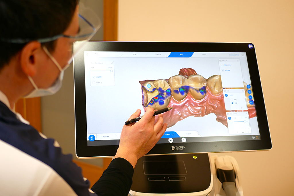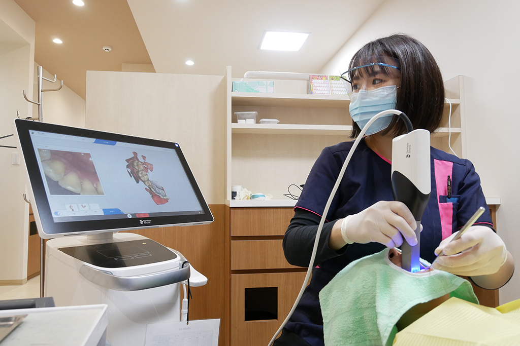 印象材(歯型採取の際に口に入れるゴムのような材料)を使用せず、カメラを使用し口腔内をスキャンします。短時間で完了するため、患者さんへの負担を軽減する事ができます。