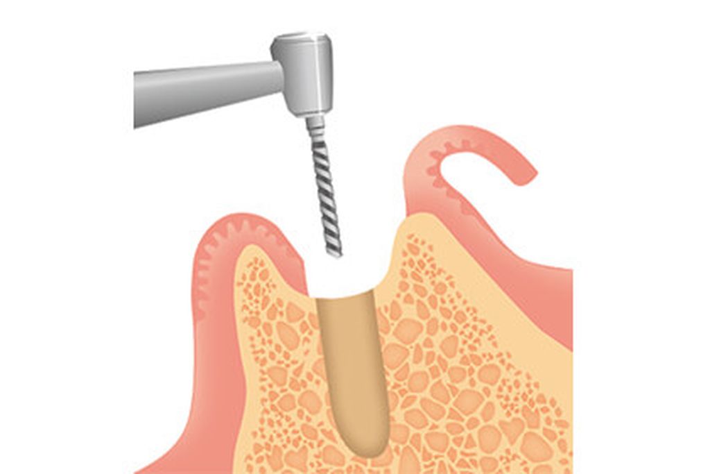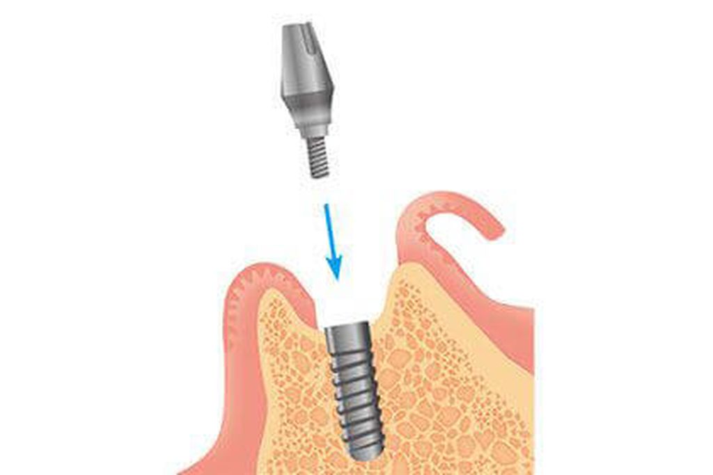 インプラント体は顎の骨としっかり結合して、新しい骨に覆われます。取り付け箇所の新しい骨を削ることで、人工歯の土台(アバットメント)を装着が可能です。