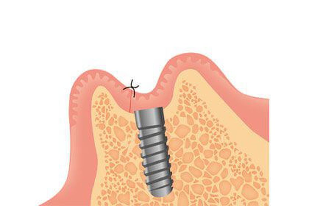 インプラント体を埋めたら、歯ぐきを糸で縫い合わせて手術は終了です。